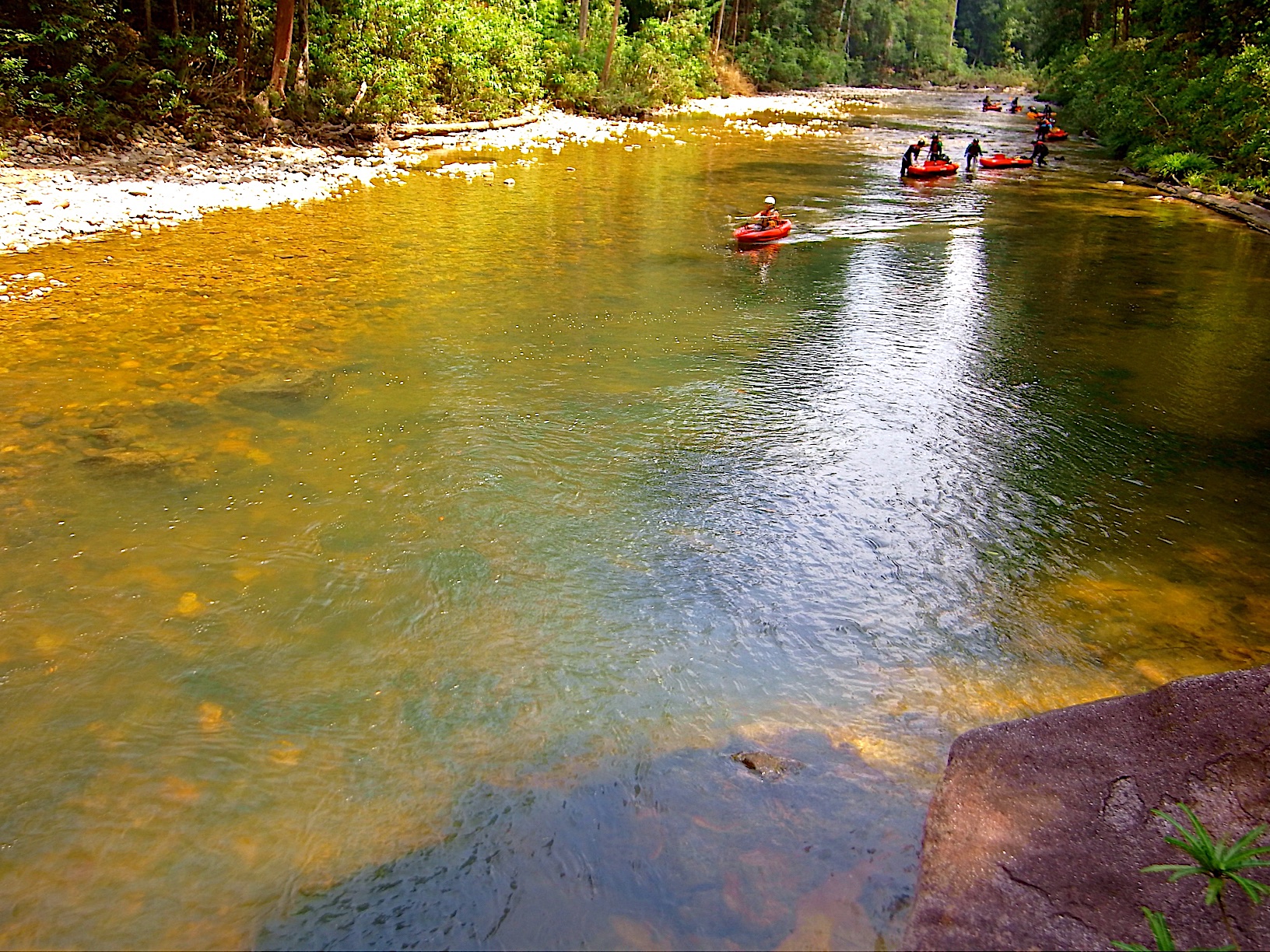 A river flows through it. All of 248 million years of tropical rainforest. The source of the river is still pure, and clear waters flows through verdant forest, where tigers and rhinos still roam. We will encounter multiple rapids (beginner) as we paddle downriver exploring this incredible national park. The multi-day river adventure moves where the river flows. Each day, we move to a different campsite as we paddle through the extensive rainforest on double kayaks. Moving with little impact and noise, we hope to be and feel closer to tranquility and nature. We will explore 3 rivers, learn how to safely navigate whitewater rapids, learn about survival from the wise Orang Asli, trek to waterfalls, etc.